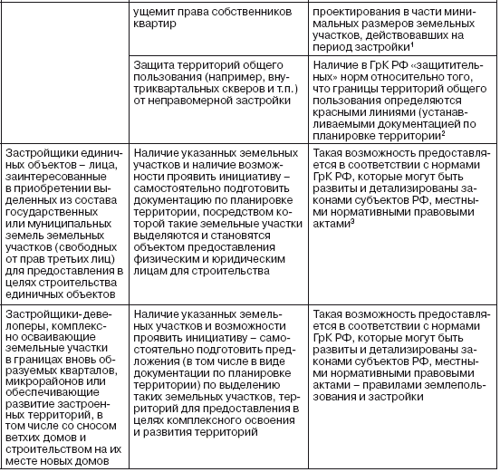 Примечание. Таблица составлена с использованием положений ГрК РФ.[2]