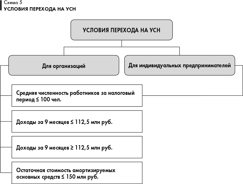 Для индивидуальных предпринимателей, желающих перейти на УСН, действует только последнее условие (численность работников). Ограничений имущественного характера для них не установлено, т. е. условия более мягкие.