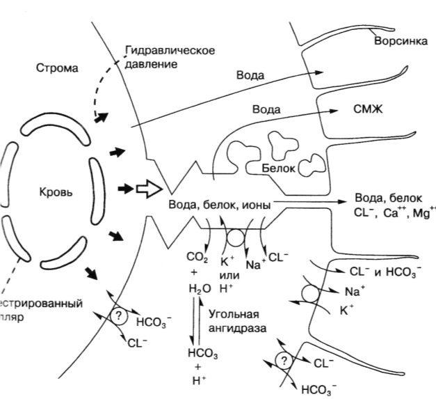 Спинномозговая жидкость (ликвор). Ликвор образуется хориоидальными сплетениями боковых желудочков головного мозга до 500-600 мл/сутки. В субарахноидальном пространстве циркулирует до 150 мл ликвора, 90 % реабсорбируется в синусы твердой мозговой оболочки. Основная функция ликвора – обеспечение защиты для головного мозга, участие в метаболизме, нейротрансмиссия, транспорт метаболитов. Изменения концентрации активных ионов и ряда других веществ способы изменить параметры спонтанной вентиляции, мозгового кровообращения и мышечного тонуса. Совместно с интерстициальной жидкостью ликвор обеспечивает стабильность уровня глюкозы для нейрональной ткани.