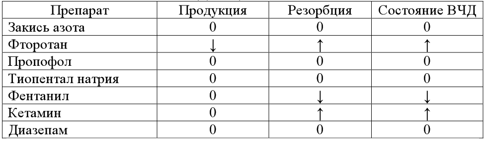 0 – нет влияния, ↑ – увеличение, ↓ – снижение