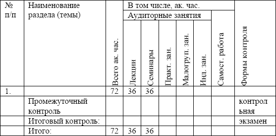Семинарские занятия организуются по группам. Общий объем семинарских занятий составляет 36 академических часов на очной форме обучения; 18 академических часов на очно/заочной форме обучения; 6 академических часов на заочной форме обучения.
