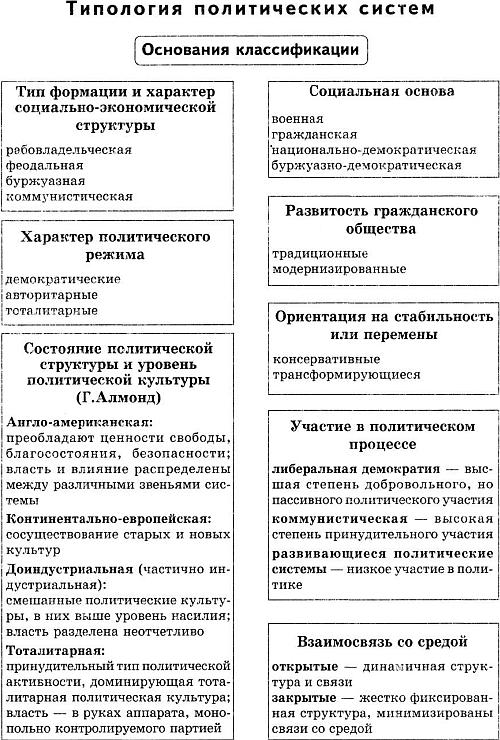 Рис. 3. Типы политических систем. (Сидельникова Т. Т., Темников Д. А., Шарагин И. А. Политология. Комментарии, схемы, афоризмы. М. Владос. 1999. С. 75)