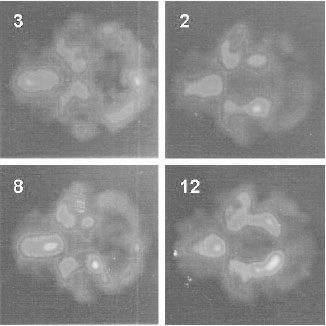 В результате кластерного анализа для изображений типов А и В были построены соответствующие деревья классификации, показывающие уровни объединения изображений во все более крупные классы. По результатам кластерного анализа среди изображений типа А (см. рисунок 5) и среди изображений типа В (см. рисунок 6) были выбраны 4 изображения, имеющие разную степень сходства между собой., Изображения типа Б и Г представлены на рисунках 7 и 8.