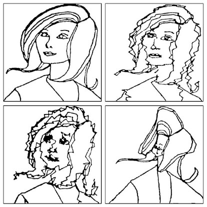 • Г – черно-белые изображения женского лица, выполненные при помощи компьютера и имеющие разную степень искажения (Моль, Фукс, Касслер, 1975).
