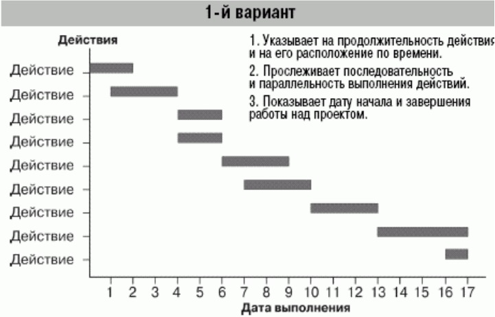 Примеры составления диаграммы Гантта рисунки 1,2,3.