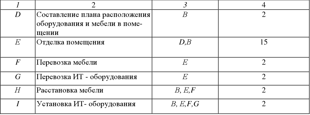 Таблица 2 Установленные соотношения "предшественник-последователь" для проекта " Переезд в новый офис "
