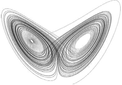 Странный аттрактор представляет собой систему траекторий (состояний) системы, не повторяющихся по времени с абсолютной точностью, но имеющих некоторый «предсказуемый» коридор отклонений. Самый знаменитый странный аттрактор носит имя американского математика Эдварда Лоренца и своим видом напоминает бабочку.