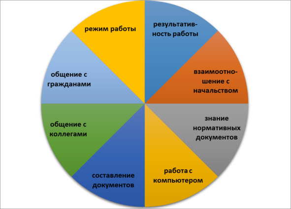 Баланс профессионализма. Также нарисуем круг с пересекающимися в центре радиусами, также радиусов установим в количестве восемь – это будут ваши сферы профессионализма (сфера – это составляющая (какая-то часть) профессиональной деятельности). Чтобы легче определиться со сферами профессиональной деятельности, задумайтесь над вопросом: «Что я должен знать и уметь, чтобы успешно выполнять профессиональную деятельность?» (рисунок 2).