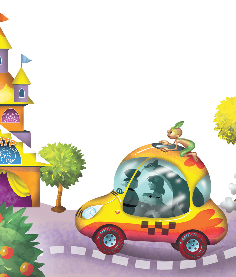 И таксист повёз их. Город был разноцветный, сложенный из строительных кубиков и башен. Игрушечные деревья очень украшали его. Изредка встречались немножко кривобокие, но очень красивые замки.