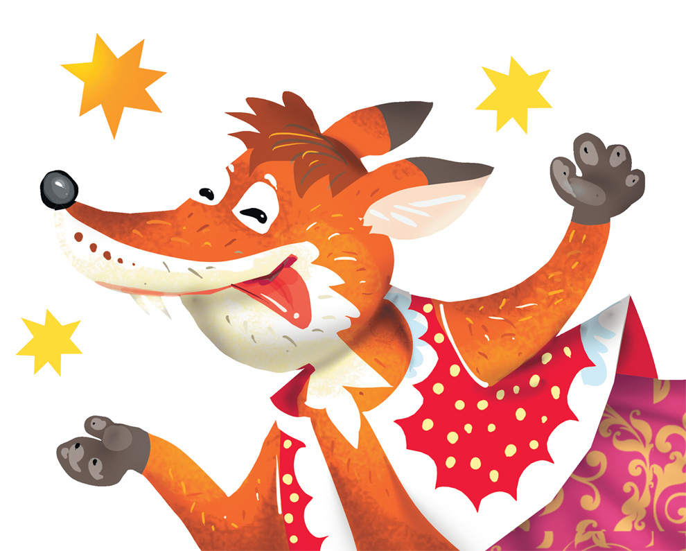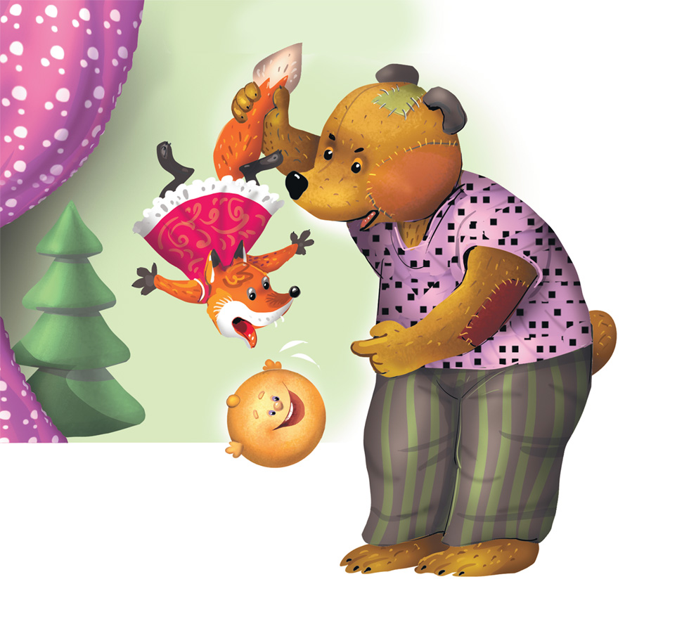 Тут сбежались все артисты, стали её успокаивать. Даже сам директор театра пришёл. А медведь взял лису за задние лапы и на глазах у всех вытряхнул из неё колобка и дал девочке его подержать.