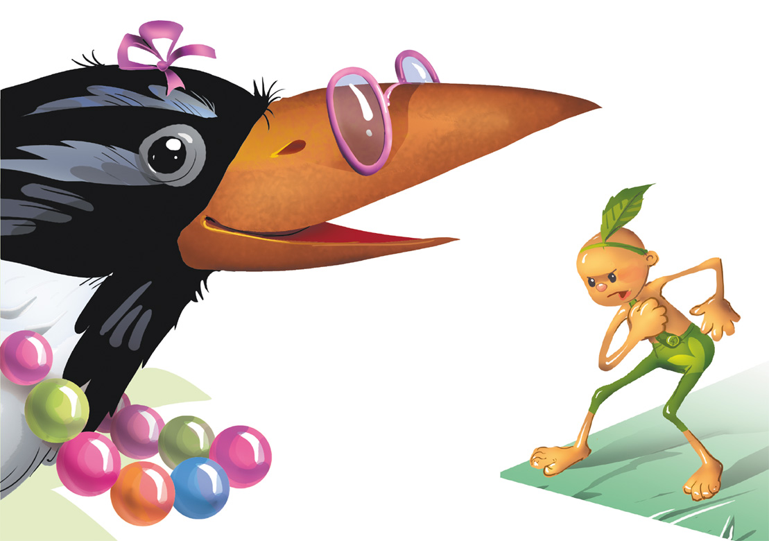 Сорока так рассердилась, что не ущипнула, а клюнула человечка. И тут её нос залип в Гевейчике.