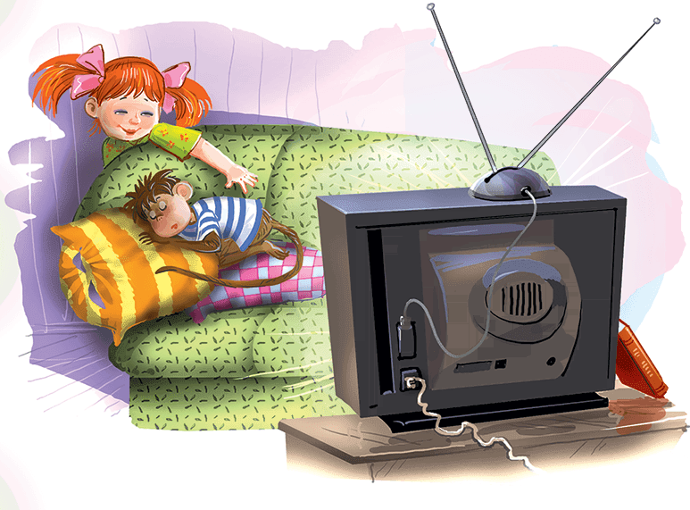 Папа её из стула достал и на диван перед телевизором посадил. Тут и мама пришла. Мама пришла и сразу сказала:
