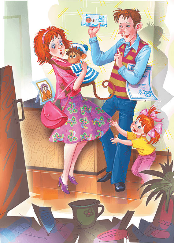 – Если вся мебель в квартире вверх ногами, это сюрприз? И точно: все табуретки, все столы и даже телевизор – всё в квартире вверх ногами поставлено. А на люстре обезьянка висит и электрические лампочки облизывает.