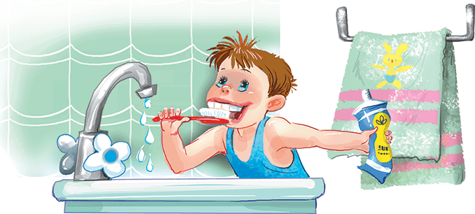 – Итак, выдавили пасту на щётку и стали чистить зубы. Вот так – сверху вниз. Маруся Петрова, правильно. Виталик Елисеев, правильно. Вера, правильно. Анфиса, Анфиса, ты что делаешь? Кто тебе сказал, что зубы надо чистить на люстре? Анфиса, не посыпай нас зубным порошком! А ну-ка, иди сюда!