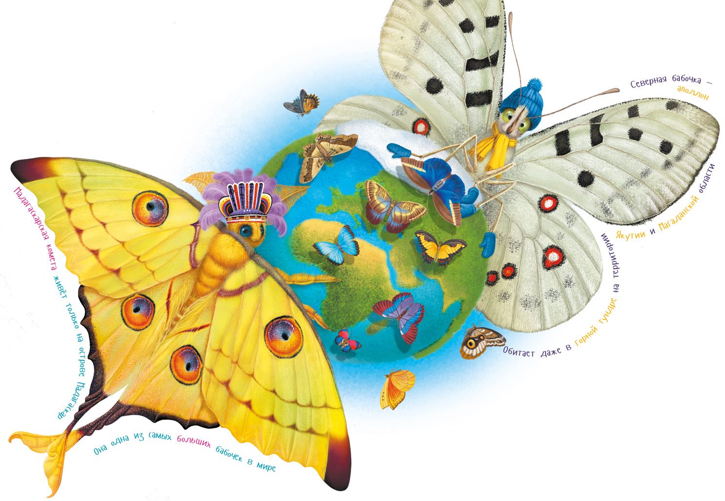 Нас можно встретить повсюду! В жаркой пустыне, где растут только кактусы и колючки. Или высоко-высоко в горах, куда и не всякий альпинист заберётся. Или… под водой. Нырнёшь в речку, а там – вот так встреча! – бабочка Огнёвка: «Привет, как дела?» Даже за полярным кругом, где земля покрыта снегом, летают арктические бабочки. Без шуб и шапок! Они довольно невзрачные на вид и похожи на снежинки. Зато выдерживают лютые холода. У меня от одной мысли мурашки по крылышкам, а они летают в своё удовольствие и совсем не мёрзнут.