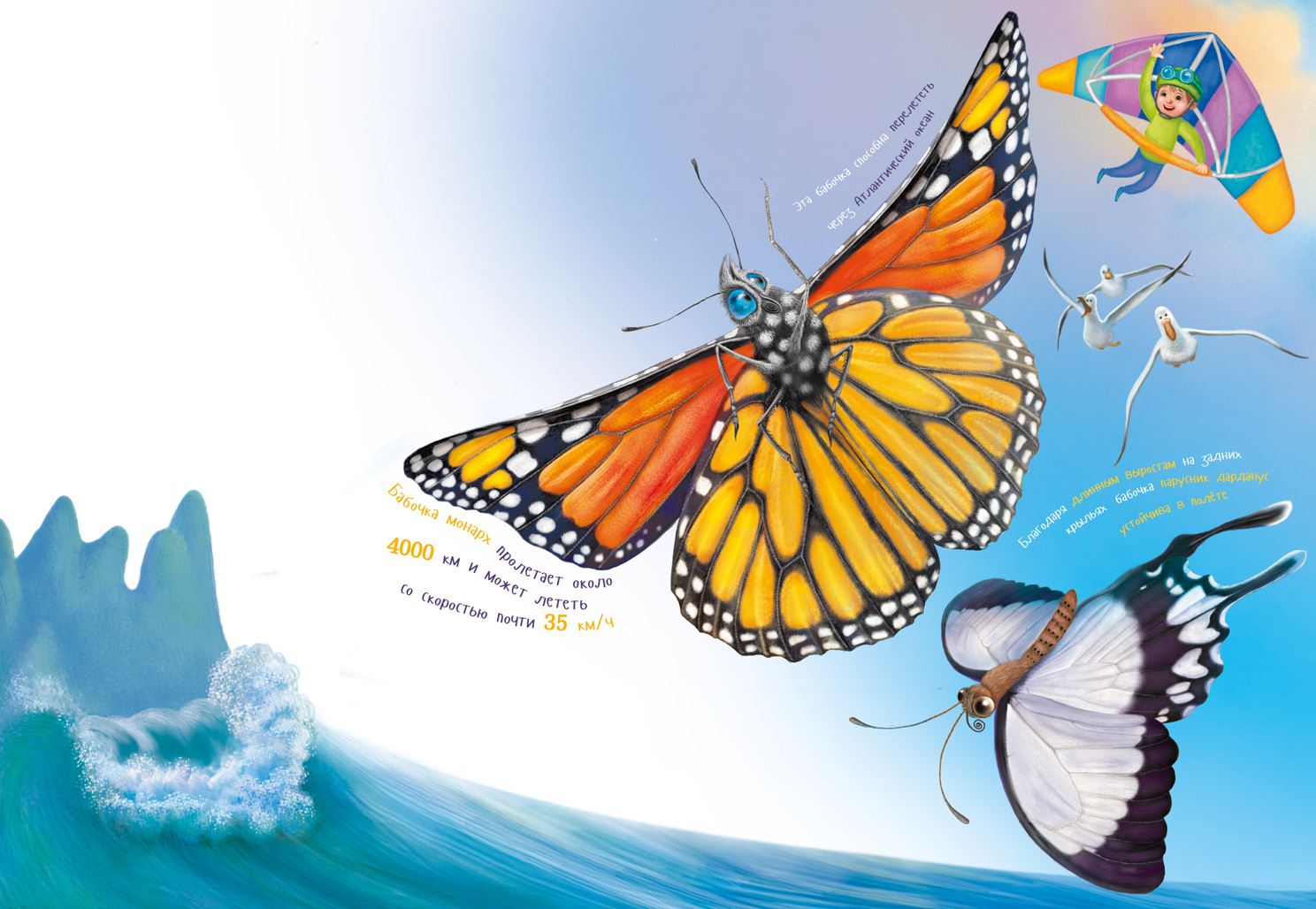 Бывают и бабочки-беженцы. Они вынуждены улетать в другие края, когда в их родных местах случается засуха. 1000 километров для нас – раз плюнуть! Мы можем пролететь их без остановки. Нам не нужны визы и загранпаспорта, поэтому мы свободно перелетаем из одной страны в соседнюю, с одного континента на другой!