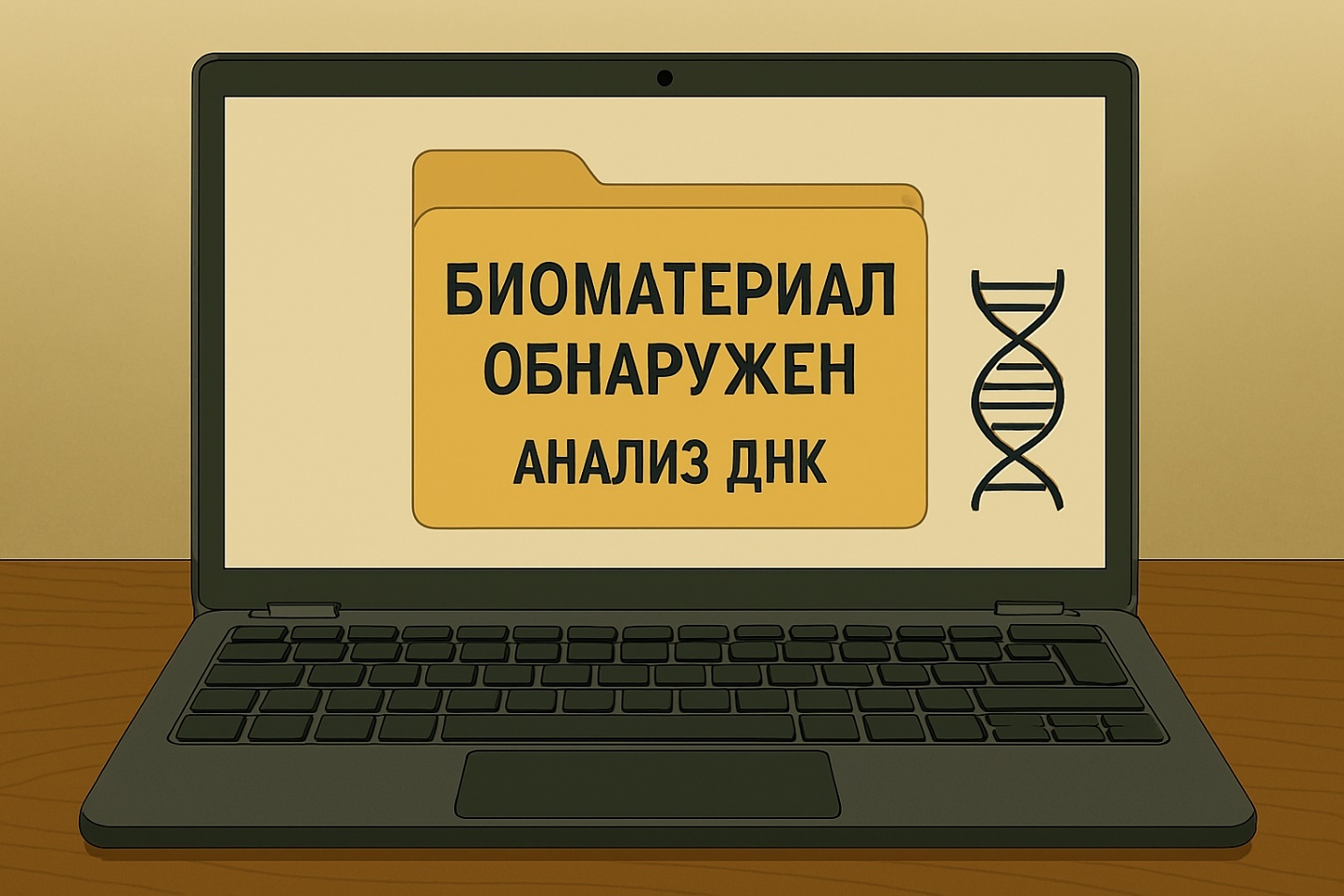 «Ай», – сказал Егор. Тут он услышал звук уведомления на ноутбуке и посмотрел на экран. Там высветилась надпись «Биоматериал обнаружен. Анализ ДНК».