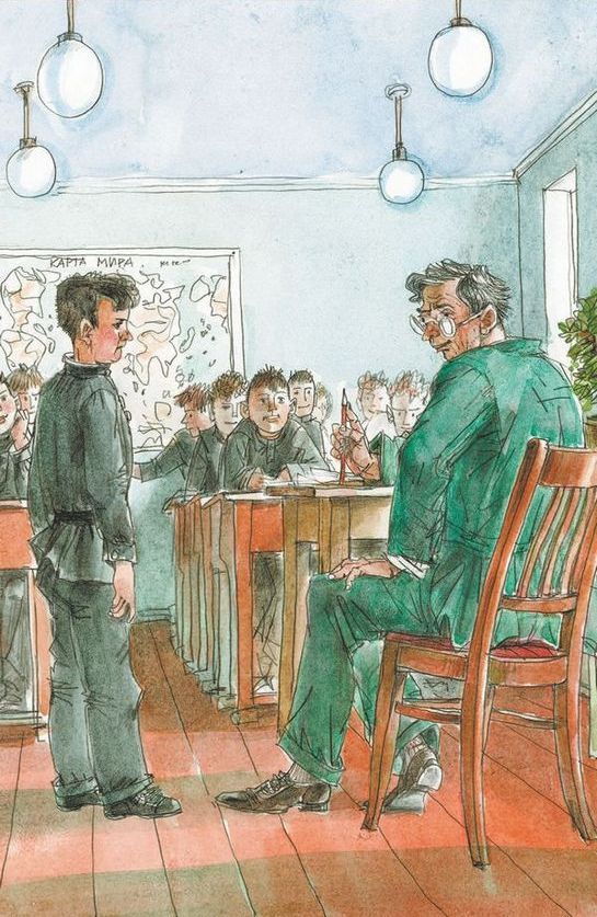 – Что ты сказал? – грозно кричит учитель. И, схватив меня за руку, тянет наверх, в директорскую. Но вдруг отпускает меня. Говорит: – Иди в класс.