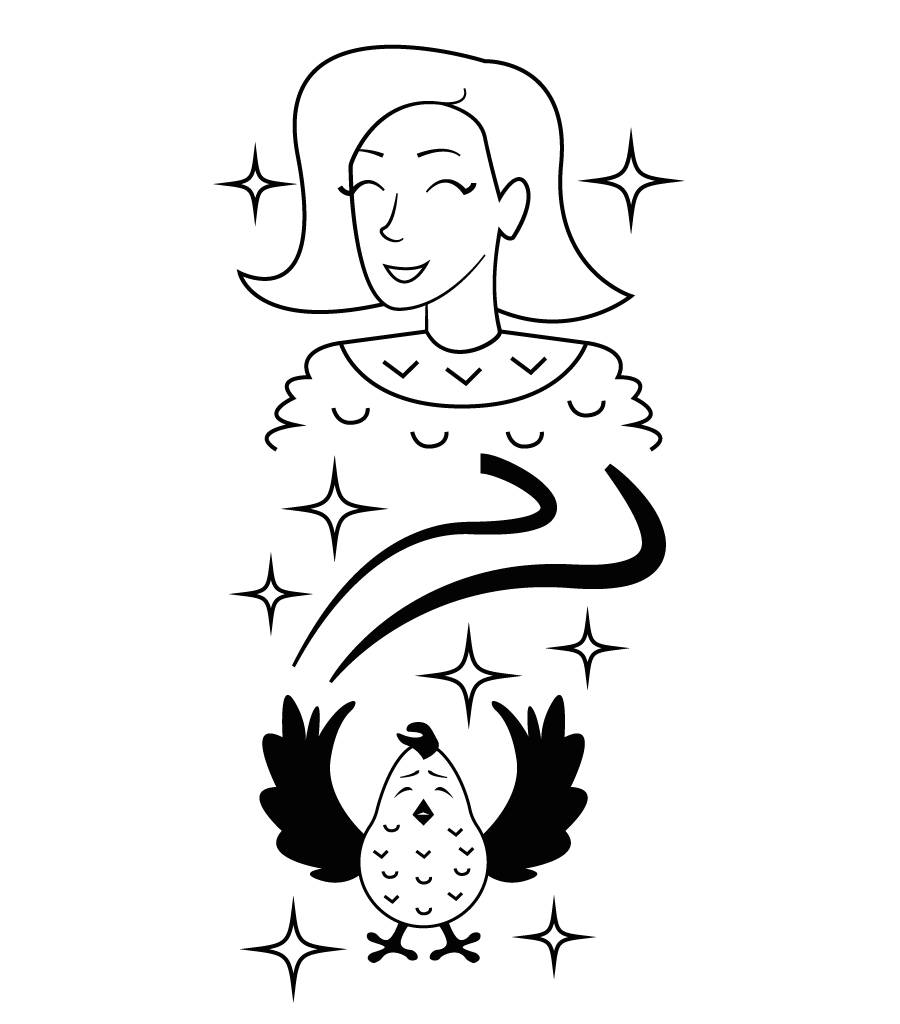 Наутро проходил Иванушка мимо избушки, в которой жили курочки, дед да баба, и нашел на дорожке пёрышко серебряное. Положил его к себе в мешок и думает: «Пригодится пёрышко». Достал горстку зёрнышек и рассыпал их по дорожке.