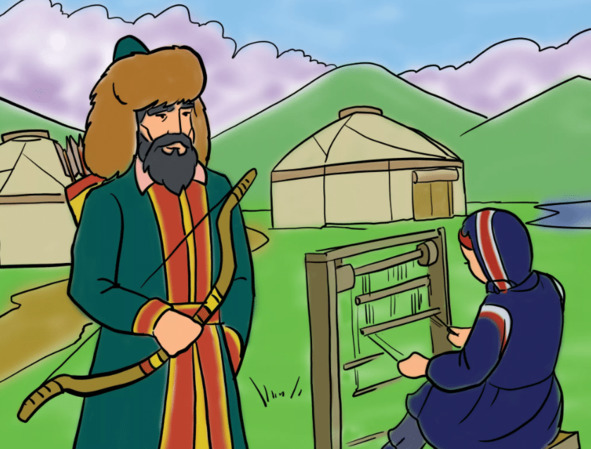 В одной старинной деревне жили были муж с женой и звали их Юмарт и Файна. Жили не богато в юрте, но на жизнь не жаловались. Муж на поле работает, жена дома хозяйство держит. И все бы ничего, только одно их огорчало не было у них детей. Уж надеяться перестали. В один прекрасный день Аллах смиловался над ними и послал им прекрасную девочку. Счастью их не было предела. Долго счастливые родители думали как же назвать дочку.