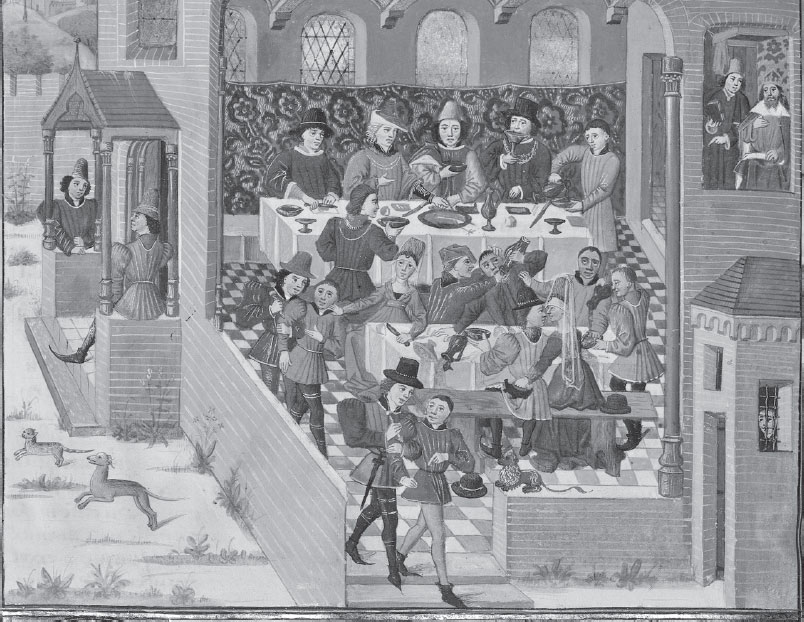 Королевский пир. Миниатюра Жана Фруассара из «Хроник Франции, Англии, Шотландии, Испании, Бретани, Гаскони и соседних стран», Франция, XIV век
