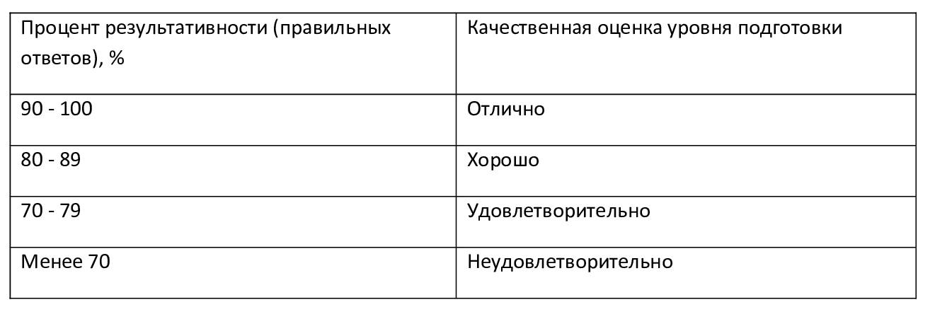Критерии оценки выполнения тестов по показателю «Процента результативности» (правильных ответов):