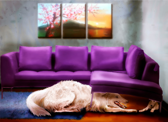Ему удалось протолкнуть себя вглубь почти до поясницы и теперь, отталкиваясь лапами от пола, он пытался приподнять диван, чтобы дотянуться до забившегося к стенке до смерти испуганного щенка. При этом он грозно рычал, стараясь напугать малыша как можно сильнее. Ему уже почти удалось добраться до наглеца, но сердитый окрик заставил его остановиться.