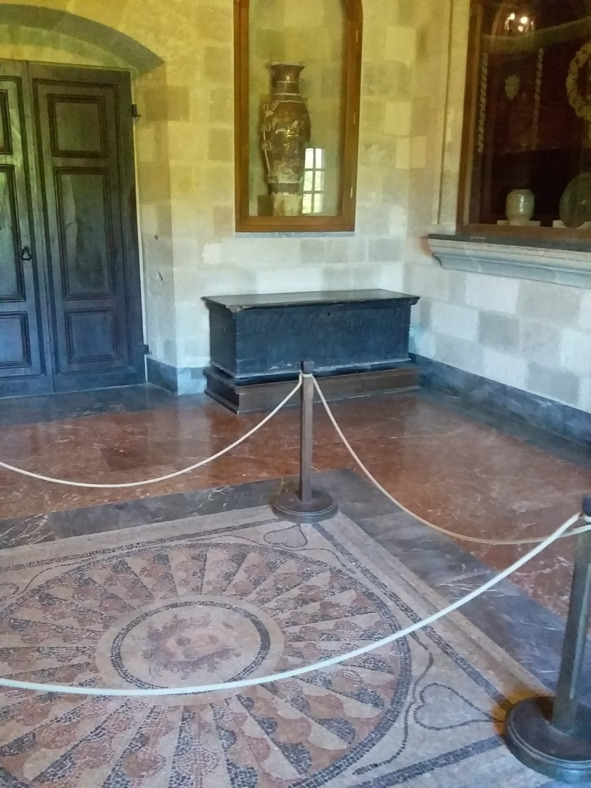 Второй этаж полностью отдан под экспозицию рыцарей мальтийского ордена. Огромные залы с мраморным полом и красочными мозаиками отапливались каминами. Кое- где есть скамьи для посетителей, ожидающих приема. В одном из залов представлены образцы одежды и рыцарских доспехов.