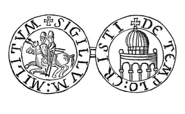 Печать тамплиеров с двумя всадниками на одном коне, а на обороте – изображение храма Соломона (ок. 1191 г.). Считается, что на печати изображены Гуго де Пейн и Готфрид де Сен-Омер.