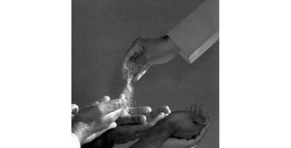 В свой второй приезд мы с нашей группой из 12 человек оказались в одной из школ в городе Майсуре. Там имелось два медальона. Учитель этой школы положил в ладонь одного из нас медальон. Через небольшое время в ладошке появилась жидкость желтоватого цвета. Потом мы попробовали ее на вкус: она была сладкой. Это была амрита! Индусы называют ее божественным нектаром и утверждают, что она обладает чудодейственными целительными свойствами. Когда ладошка первого человека наполнилась амритой, учитель аккуратно ложечкой переложил медальон в ладонь другого человека, и та тоже наполнилась амритой, рис 2.6. Скажу, что все 12 человек в группе на себе испытали это чудо материализации. И ни один скептик не смог бы опровергнуть это чудо, ведь объем материализованной амриты был во много раз больше объема медальона. Спрятать ее внутри медальона было невозможно!