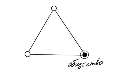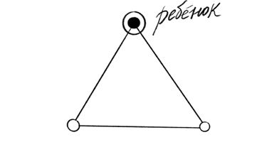 После родов малыш заполняет все родительское время и пространство, тем самым запуская потенциальные конфликты (символически показываем эти отношения на гранях треугольника).