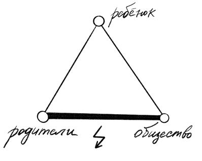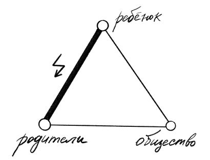 Следующий конфликт находится на грани треугольника между родителями и обществом.