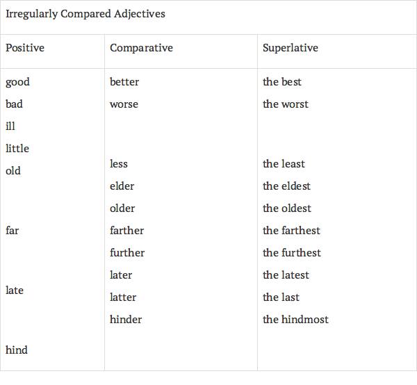 – Several two-syllable adjectives and all three- (and more) syllable adjectives form the comparative degree with most.