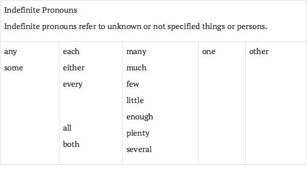 – refers either to indefinite number of things/persons or to a group of things/persons considered as a whole.
