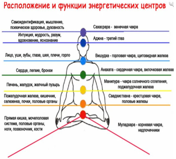 Существует семь энергетических каналов, по которым происходит энергообмен между людьми. Каждый канал находится на своём уровне (чакре).