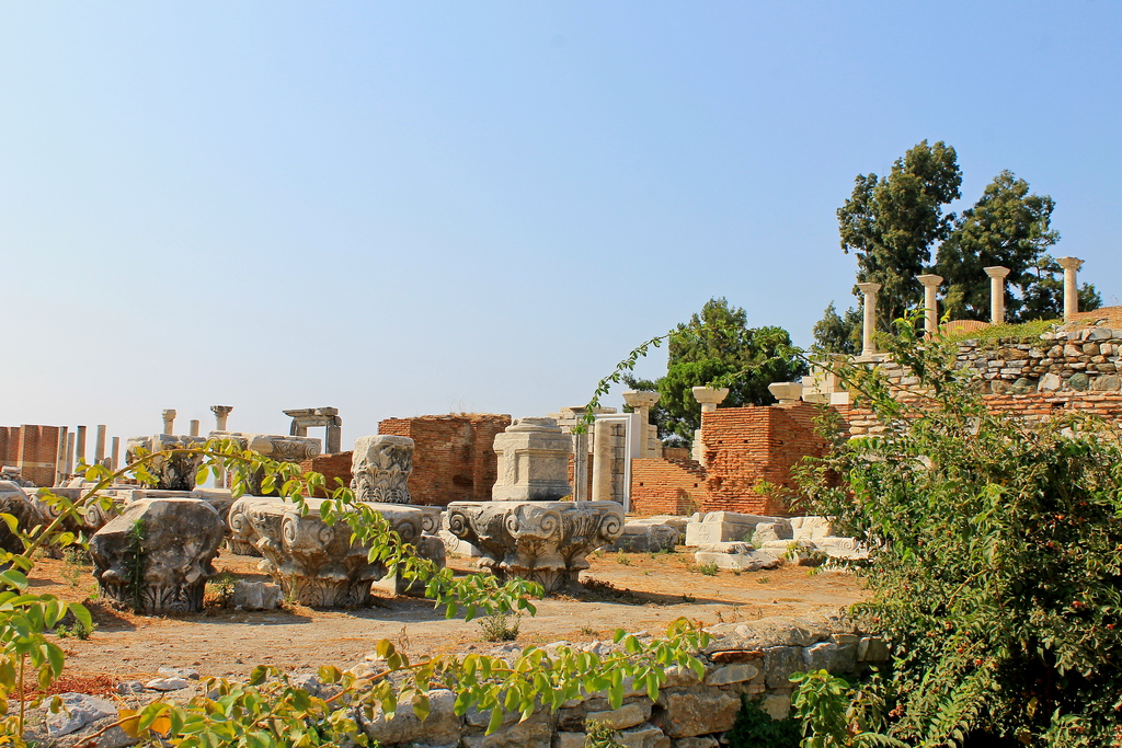 Такое великолепное сооружение не могло не привлечь внимание арабов-кочевников, которые повадились совершать на базилику набеги. Тем более, что недалеко от могилы Святого Иоанна находилась сокровищница с дарами и ценной церковной утварью. Чтобы защитить святыню, ее в VIII веке обнесли крепостными стенами. Как обычно далеко не ходили, материал для стен взяли из близлежащего Эфеса и храма Артемиды. В результате получилась добротная крепость с тремя входами и двадцатью башнями.