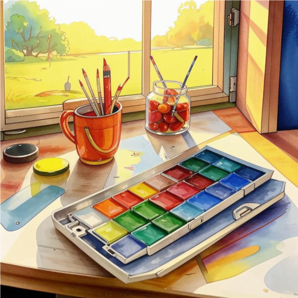 Около её кровати на стульчике лежали альбом и акварельные краски.
