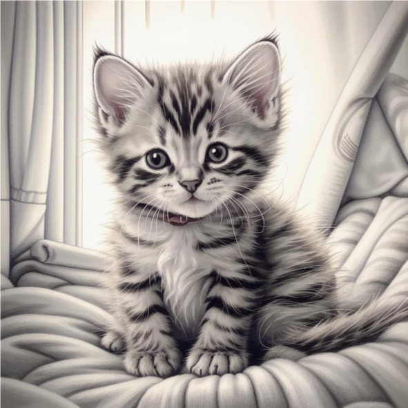 Маруся села рисовать. Однажды папа показал ей, как красиво можно изобразить щенка или котёнка, и девочка стала рисовать котёнка, взять которого уже давно упрашивала родителей. Котёнок, на её взгляд, получился очень красивым.