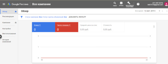 Во вкладке Обзор будет находиться вся информация по вашим рекламным компаниям.
