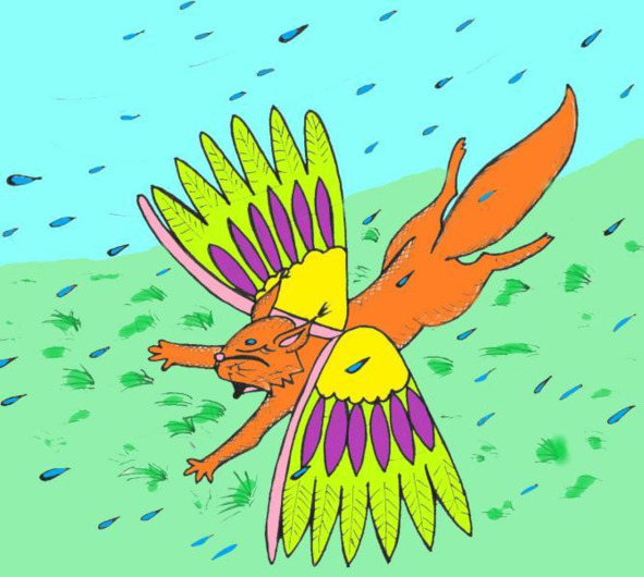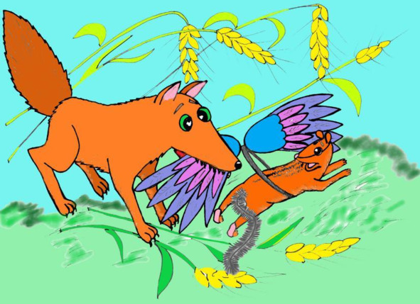 Это был тот самый Страшный Лис, которого прогнал ёжик. С проколотой лапой, злой, голодный, он вдруг увидел странное существо с крыльями. Вот так удача! Существо пахло едой! Охотник сжался пружинкой и прыгнул.