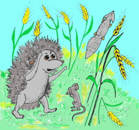 Из зарослей вынырнула мама-мышь. Нежно обняв сыночка, она повернулась к ёжику.