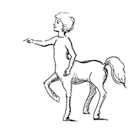Купаться можно было круглый год. А в ручье можно жемчуга насобирать целое ведро, если столько нужно. А надоест в воде барахтаться, отправляйся в лесу бродить. Однажды Эрот пошёл гулять и встретил самого настоящего кентаврика, мальчишку с туловищем жеребёнка. Две руки у него, как у обычных людей, а внизу – лошадиные ноги с копытцами. Эрот стал его разглядывать, а мальчишка – его.