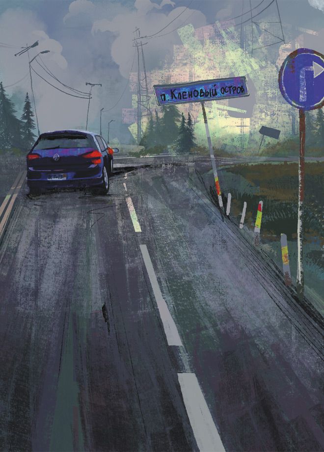 Но тут ее внимание привлекла другая странность. Саша прищурилась: дорога у самого подъезда к мосту будто серебрилась.
