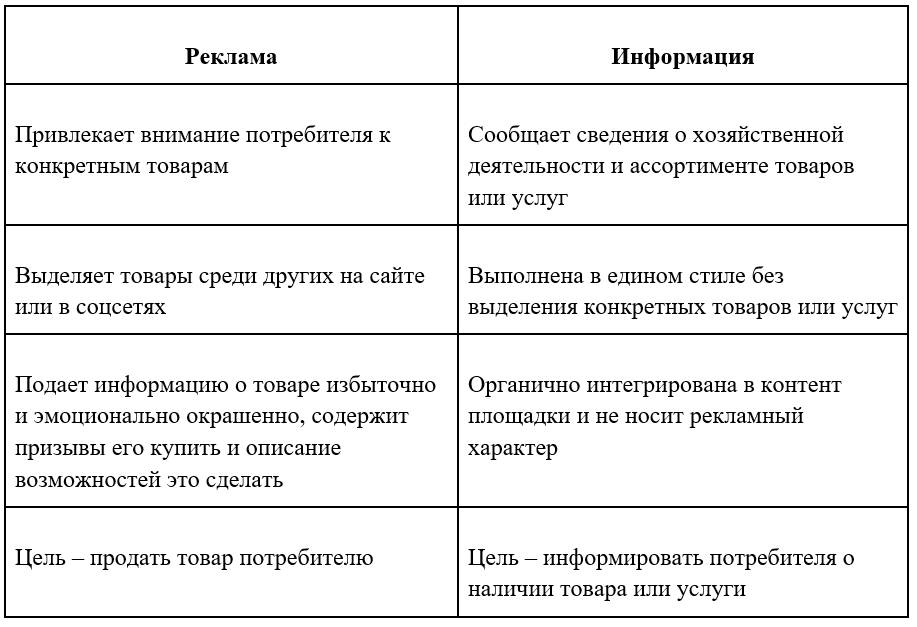 В чем разница между рекламой и информацией?