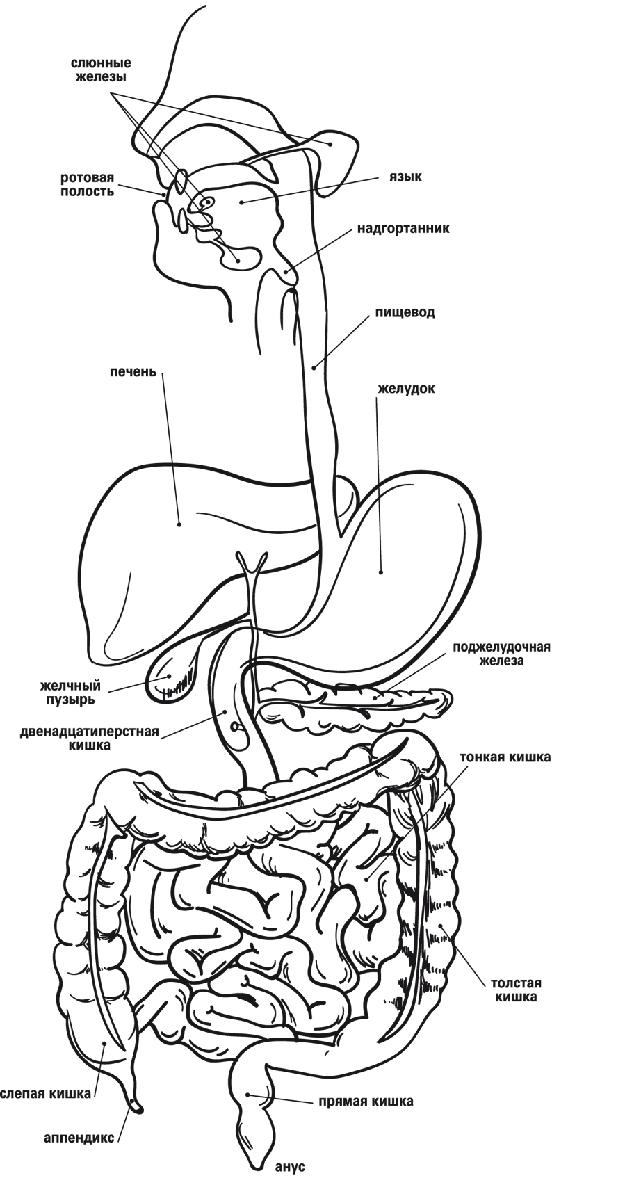 Желудочно-кишечный тракт (ЖКТ) – это гибкая мышечная трубка, протянувшаяся от рта до ануса. Пищеварительная система состоит из рта, глотки, пищевода, желудка, тонкой и толстой кишки, печени, желчного пузыря и поджелудочной железы.