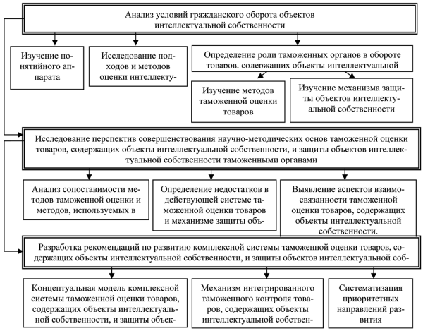 С целью развития научно-методических основ таможенной оценки товаров, содержащих объекты интеллектуальной собственности, и защиты объектов интеллектуальной собственности таможенными органами Российской Федерации в настоящей работе: