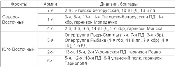 Таблица 4. Боевой состав Красной армии на Польском фронте