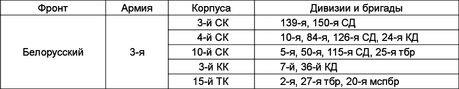 Соответственно, в 7.00 2 октября командующий 3-й армии получил оперативный приказ Военного совета Белорусского фронта № 08 от 1 октября, согласно которому изменялся состав 3-й и 11-й армий: