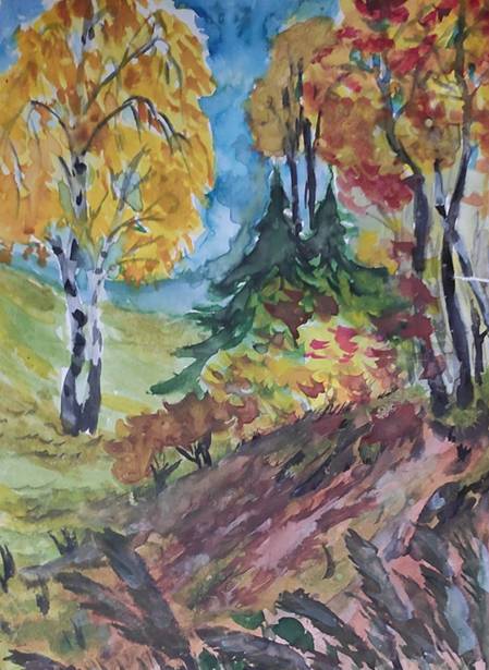 Всюду бушует палитра осенних красок: багряных, желтых, бордовых, коричневых, красных, оранжевых, золотистых. Лишь кое-где мелькает запоздалая зелень.