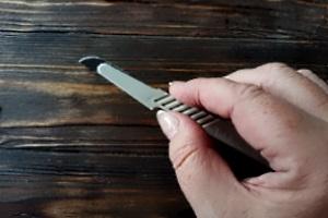 Для первых работ лучше выбрать мастихин овальной формы, со скругленными краями.